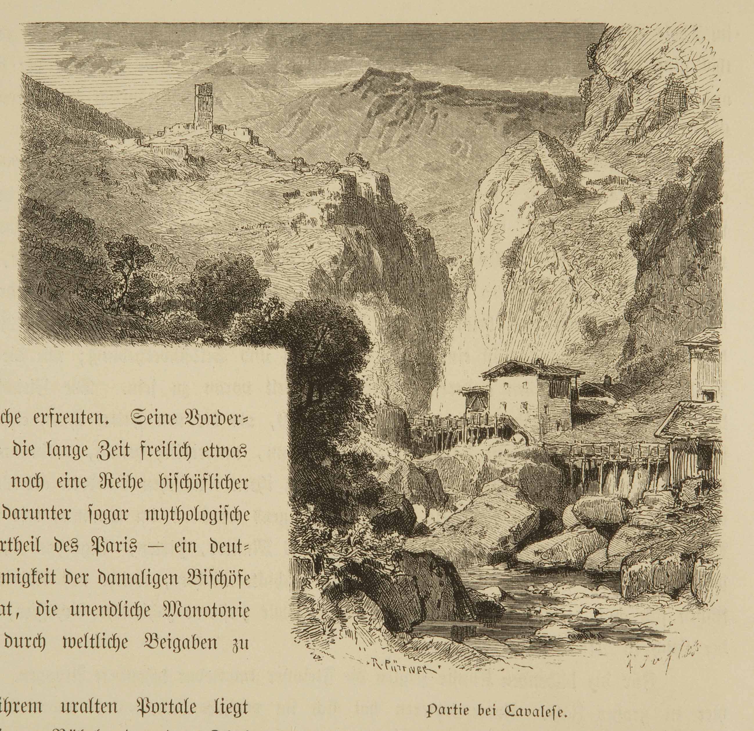Calcografia; 122x132 mm. Pubblicata in Ludwig von Hörmann, Wanderungen durch Tirol und Vorarlberg, Stuttgart, Kröner, [1877]