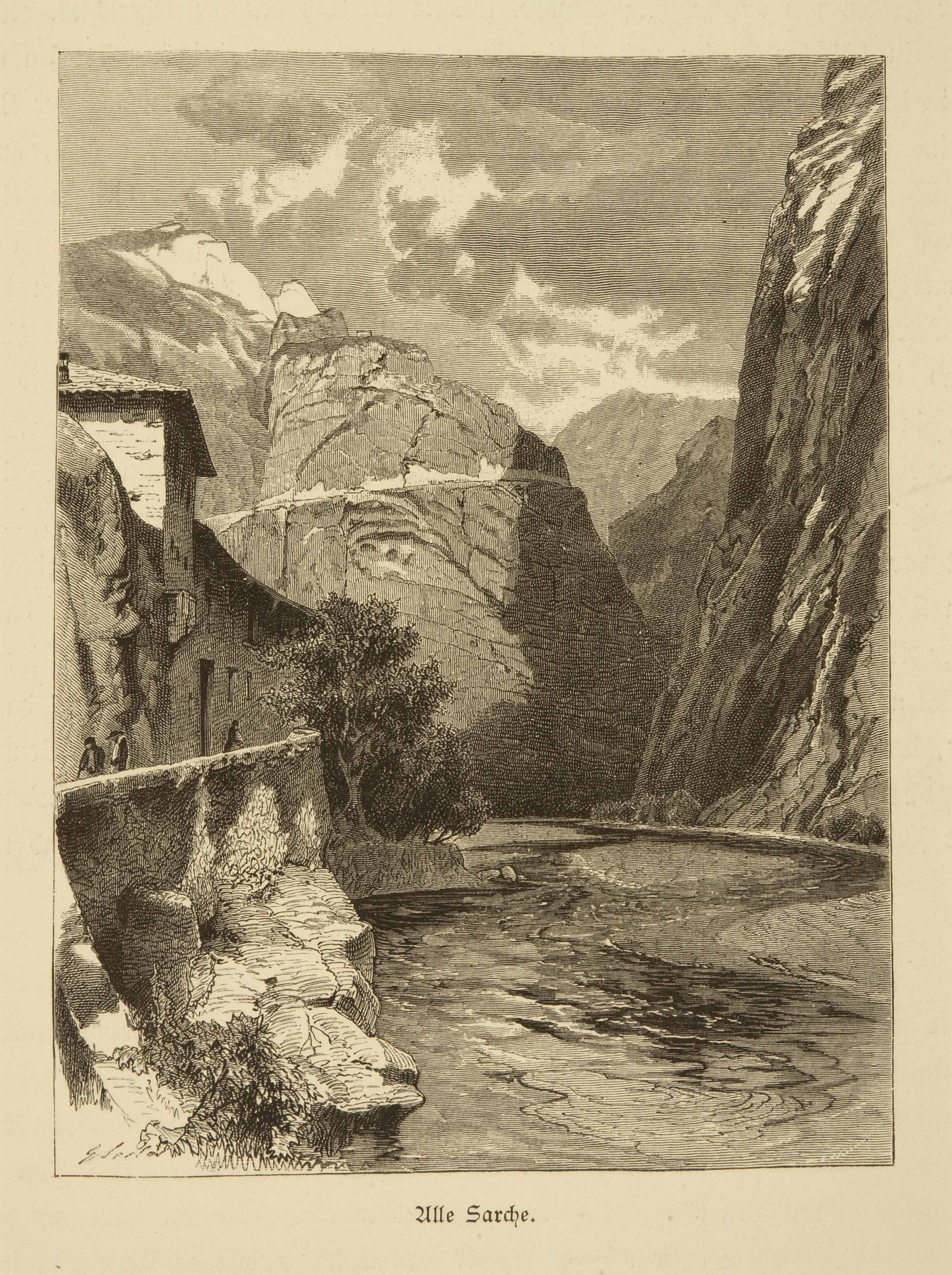 Calcografia; 145x110 mm. Pubblicata in Ludwig von Hörmann, Wanderungen durch Tirol und Vorarlberg, Stuttgart, Kröner, [1877]