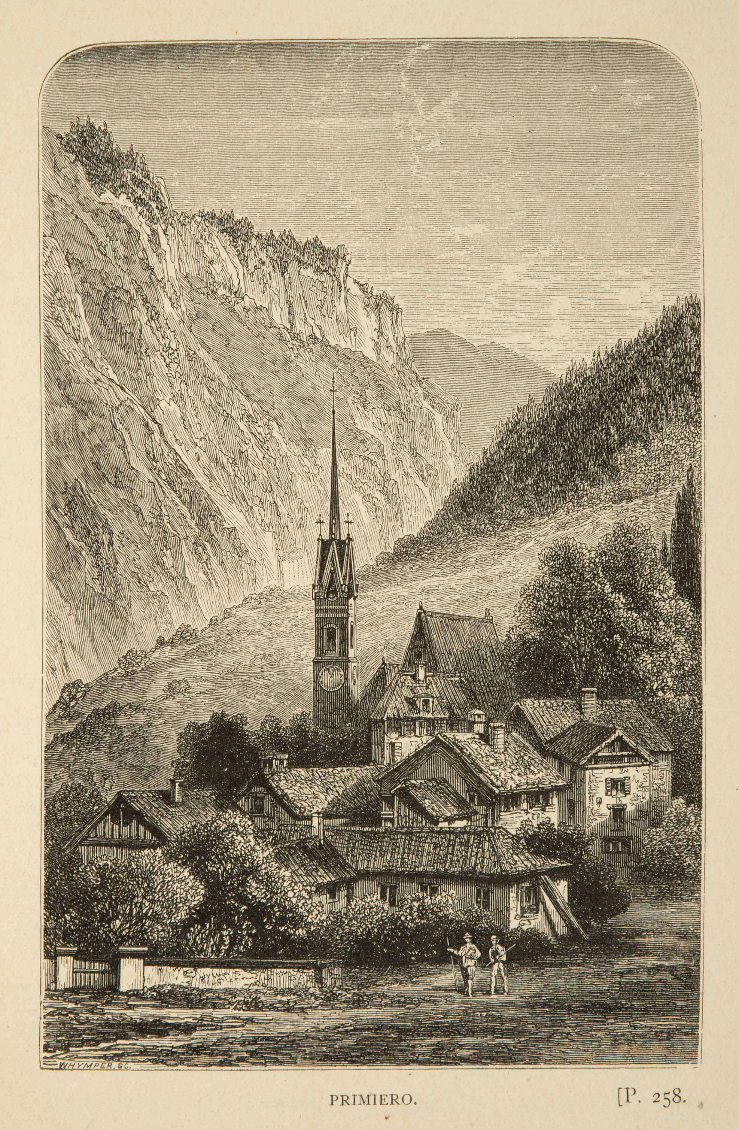Calcografia; 155x100 mm. Incisione di Edward Whymper, pubblicata in Amelia Blandford Edwards, Untrodden peaks and unfrequented valleys. A midsummer ramble in the Dolomites, London, Routledge, 1889