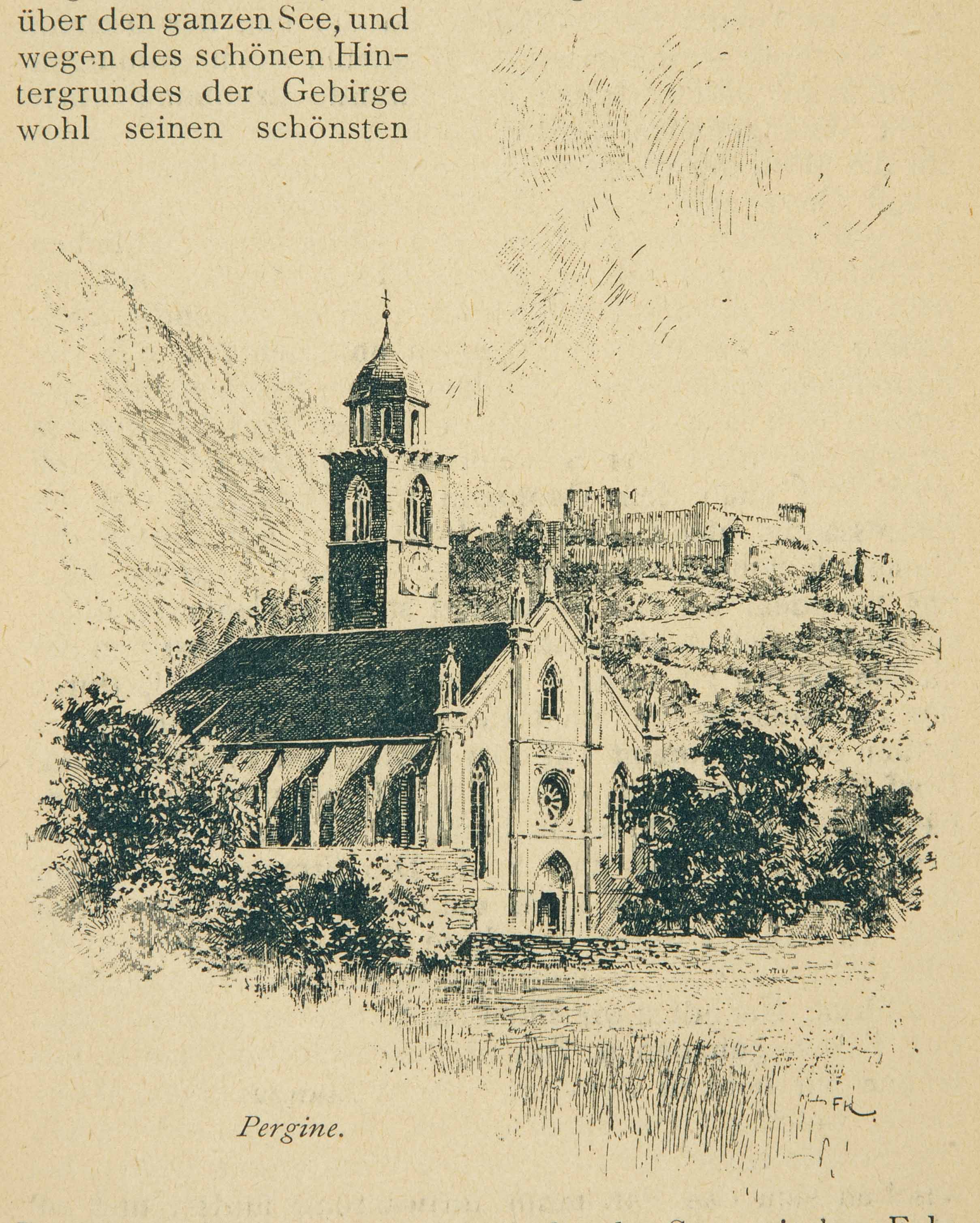 Calcografia; 110x81 mm. Pubblicata in Karl Jülg, Von Trient nach Tezze. Valsuganer Lokalbahn, Salzburg, Fremden-Zeitung, 1896