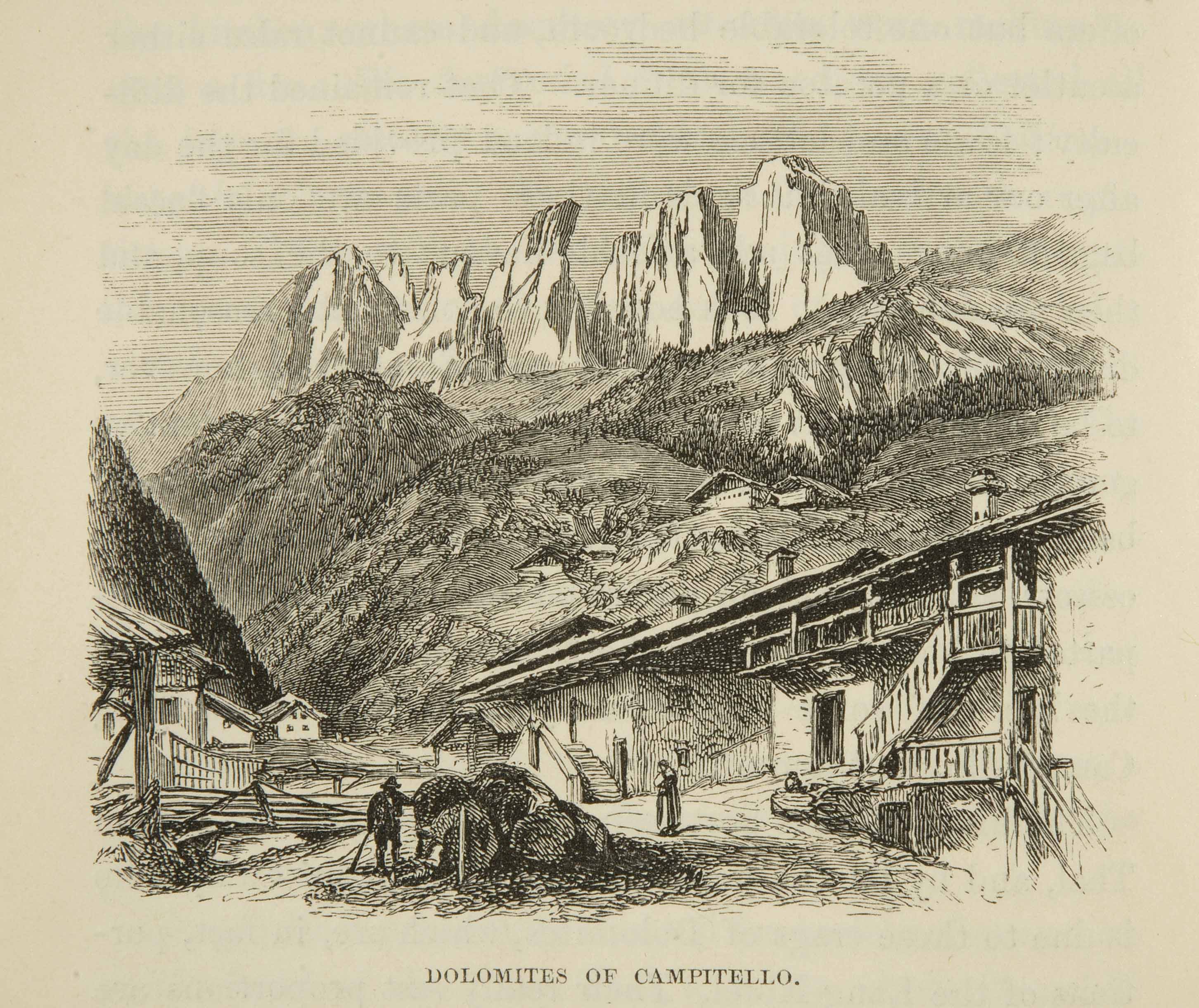 Calcografia; 74x86 mm. Pubblicata in Josiah Gilbert e George Cheetham Churchill, The Dolomite mountains. Excursions through Tyrol, Carinthia, Carniola &, Friuli in 1861, 1862 &, 1863, London, Longman &, Co., 1864