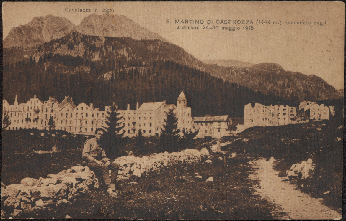 S. Martino di Castrozza (1444 m.) incendiato dagli austriaci 24-30 maggio 1915