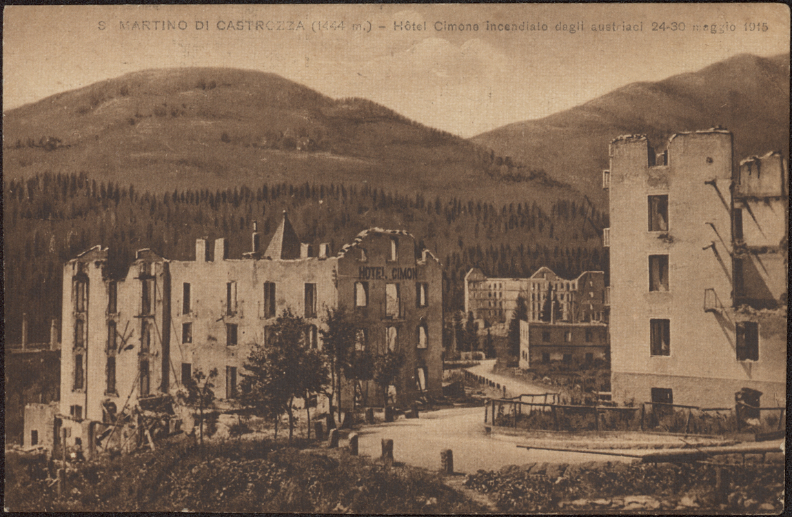 | S. Martino di Castrozza (1444 m.) - Hotel Cimone incendiato dagli austriaci 24-30 maggio 1915 |