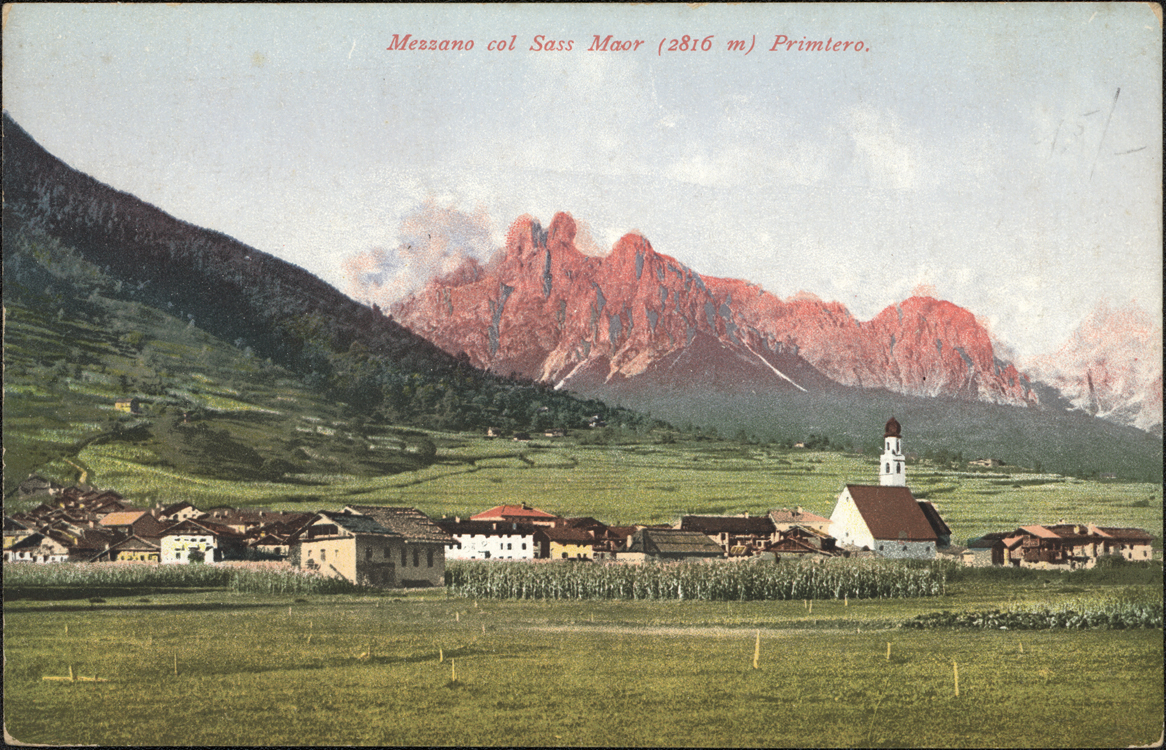 | Mezzano col Sass Maor (2816 m) Primtero. |
