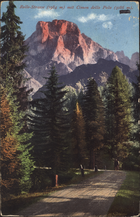 | Rolle-Strasse (1984 m) mit Cimon della Pala (3186 m). |