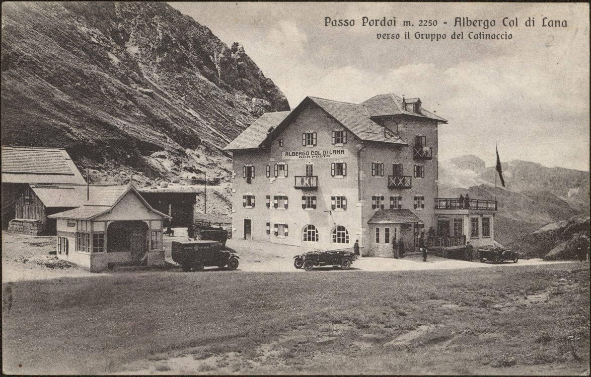 | Passo Pordoi m. 2250 - Albergo Col di Lana verso il Gruppo del Catinaccio |