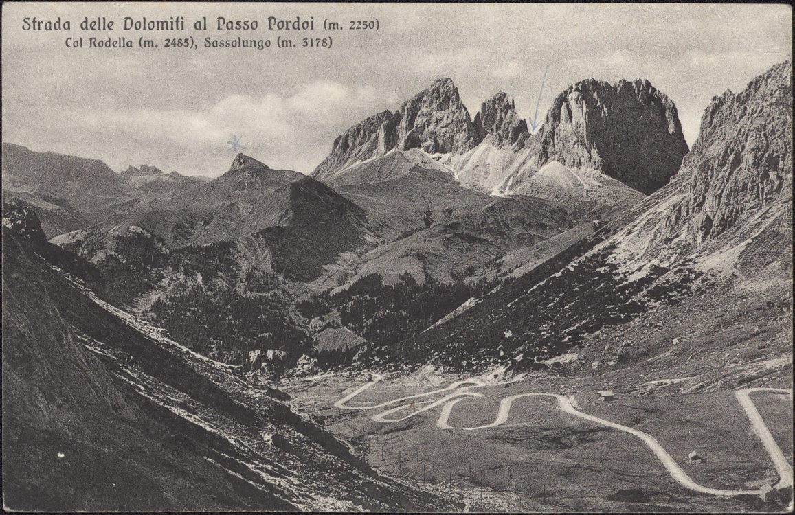 | Strada delle Dolomiti al Passo Pordoi (m. 2250) Col Rodella (m. 2485), Sassolungo (m. 3178) |