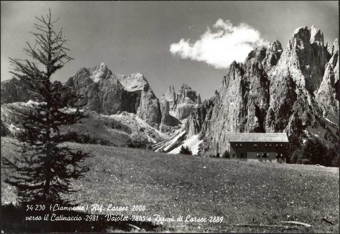 | (Ciampedie) Rif. Larsec 2000 verso il Catinaccio - 2981 - Vajolet - 2805 e Dirupi di Larsec - 2889 |