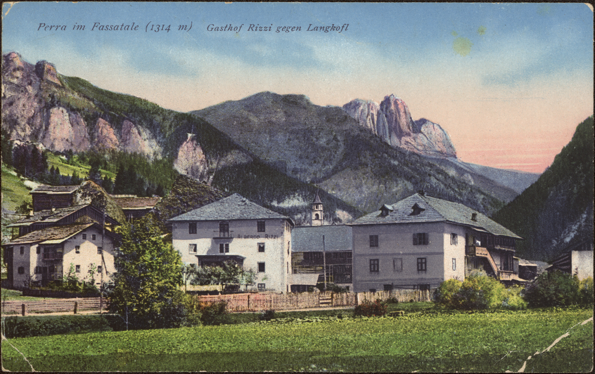 | Perra im Fassatale (1314 m) Gasthof Rizzi gegen Langkofl |