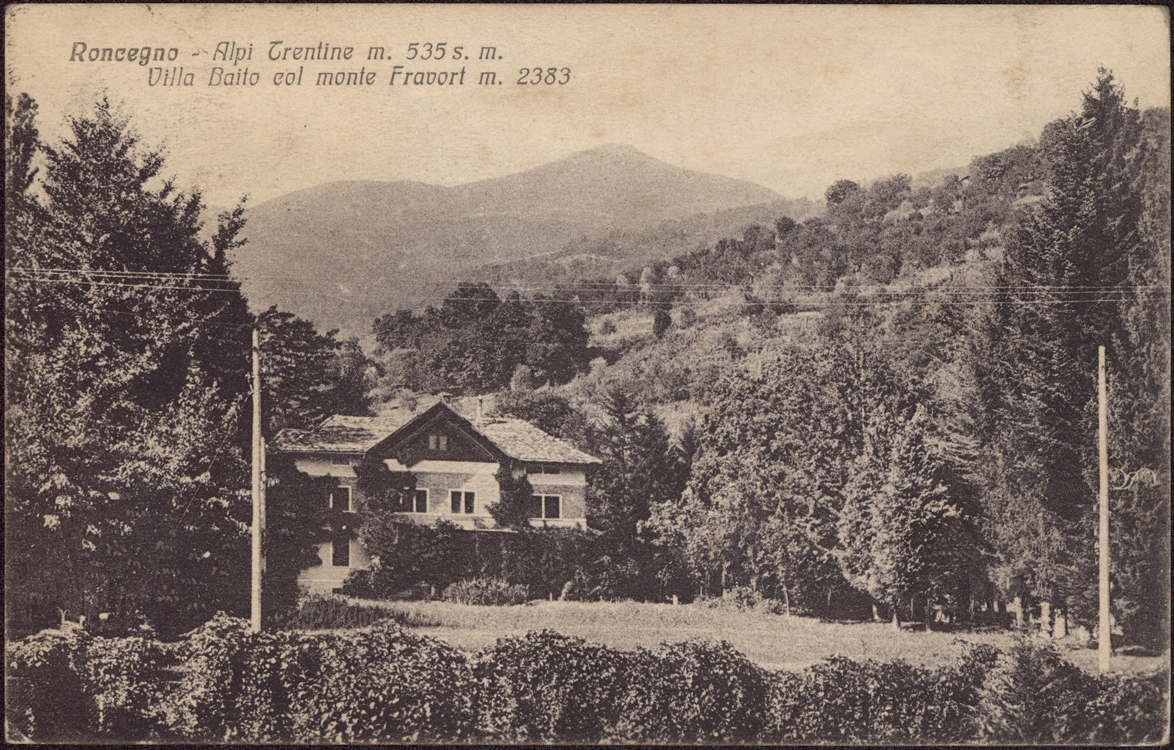 | Roncegno - Alpi Trentine m. 535 s. m. Villa Baito col monte Fravort m. 2383 |