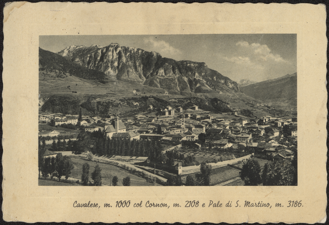 | Cavalese, m. 1000 col Cornon, m. 2108 e Pale di S. Martino, m. 3186. |