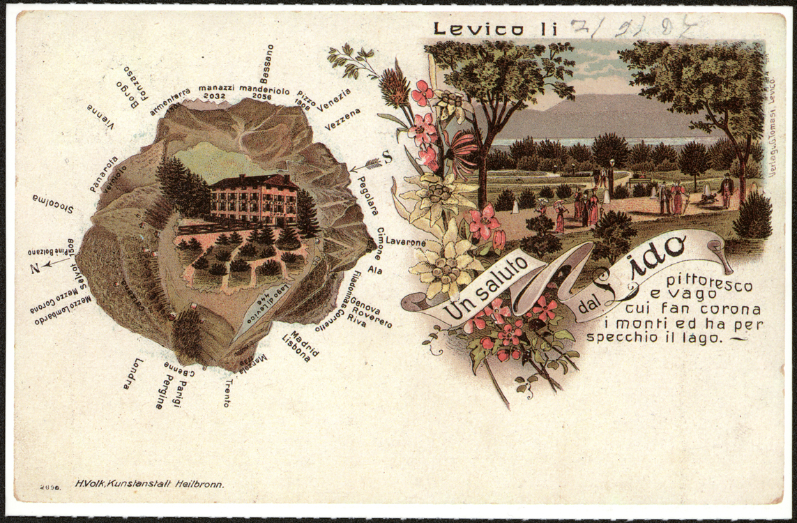 96x145 mm, color. Ristampa dell'edizione: Heilbronn, Volk, 1907, l'originale è conservato al Museo Nuvoli della cartolina di Isera