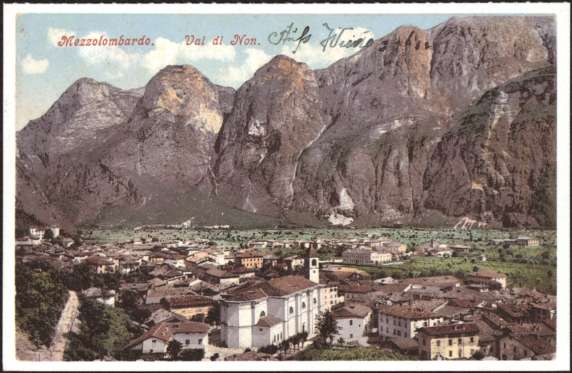 94x143 mm, color. Ristampa dell'edizione: Bolzano, Amonn, 1906, l'originale è conservato al Museo Nuvoli della cartolina di Isera