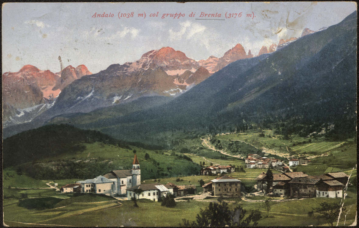 | Andalo (1038 m.) col gruppo di Brenta (3176 m). |