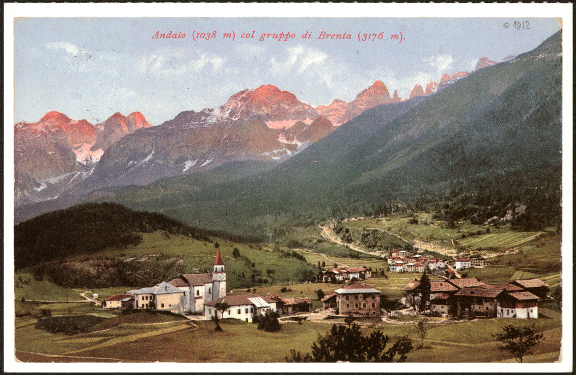 | Andalo (1038 m.) col gruppo di Brenta (3176 m). |