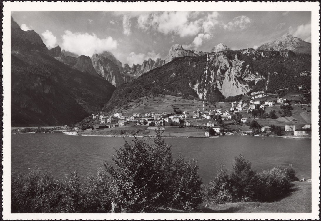 Molveno m. 864 (Trentino) Panorama col lago e le Dolomiti di Brenta...