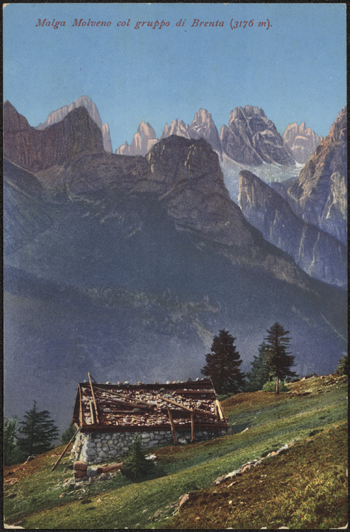 | Malga Molveno col gruppo di Brenta (3176 m). |