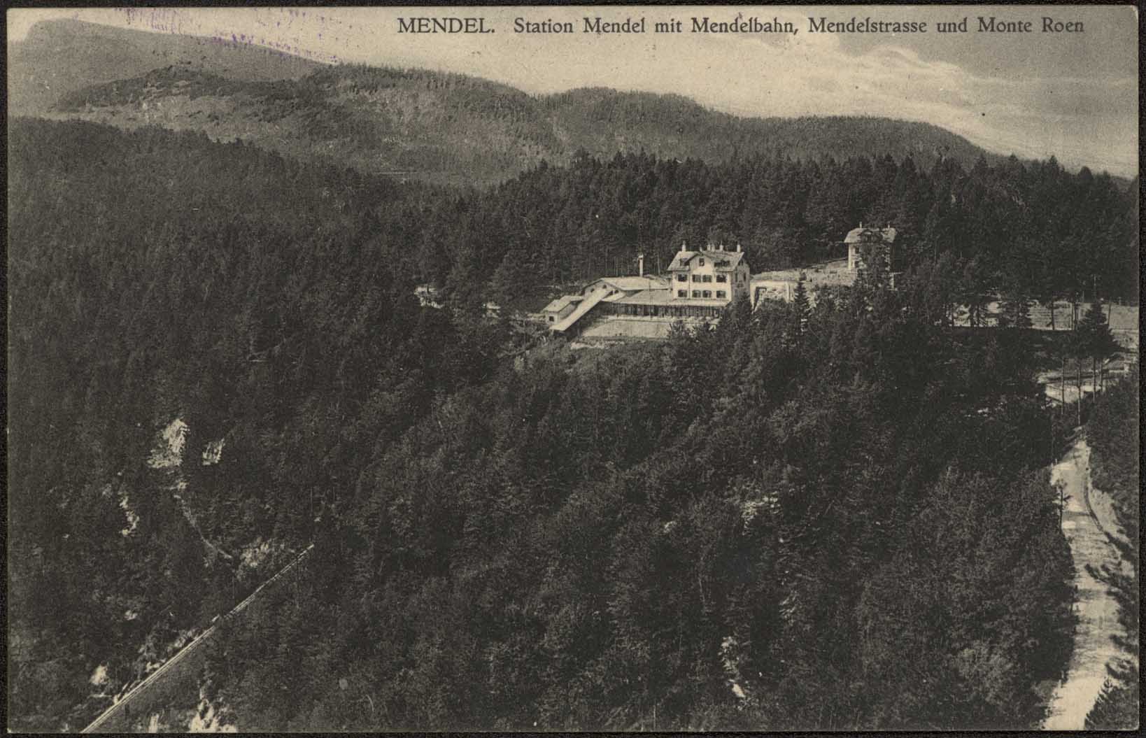 | Mendel. Station Mendel mit Mendelbahn, Mendelstrasse und Monte Roen |