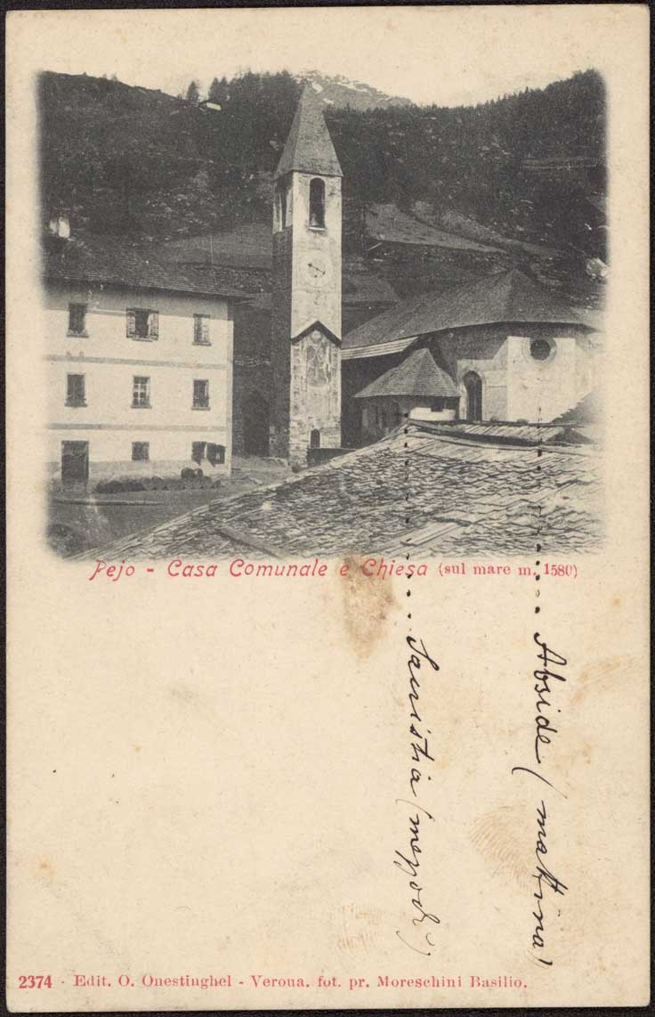 | Pejo - Casa Comunale e Chiesa (sul mare m. 1580) |