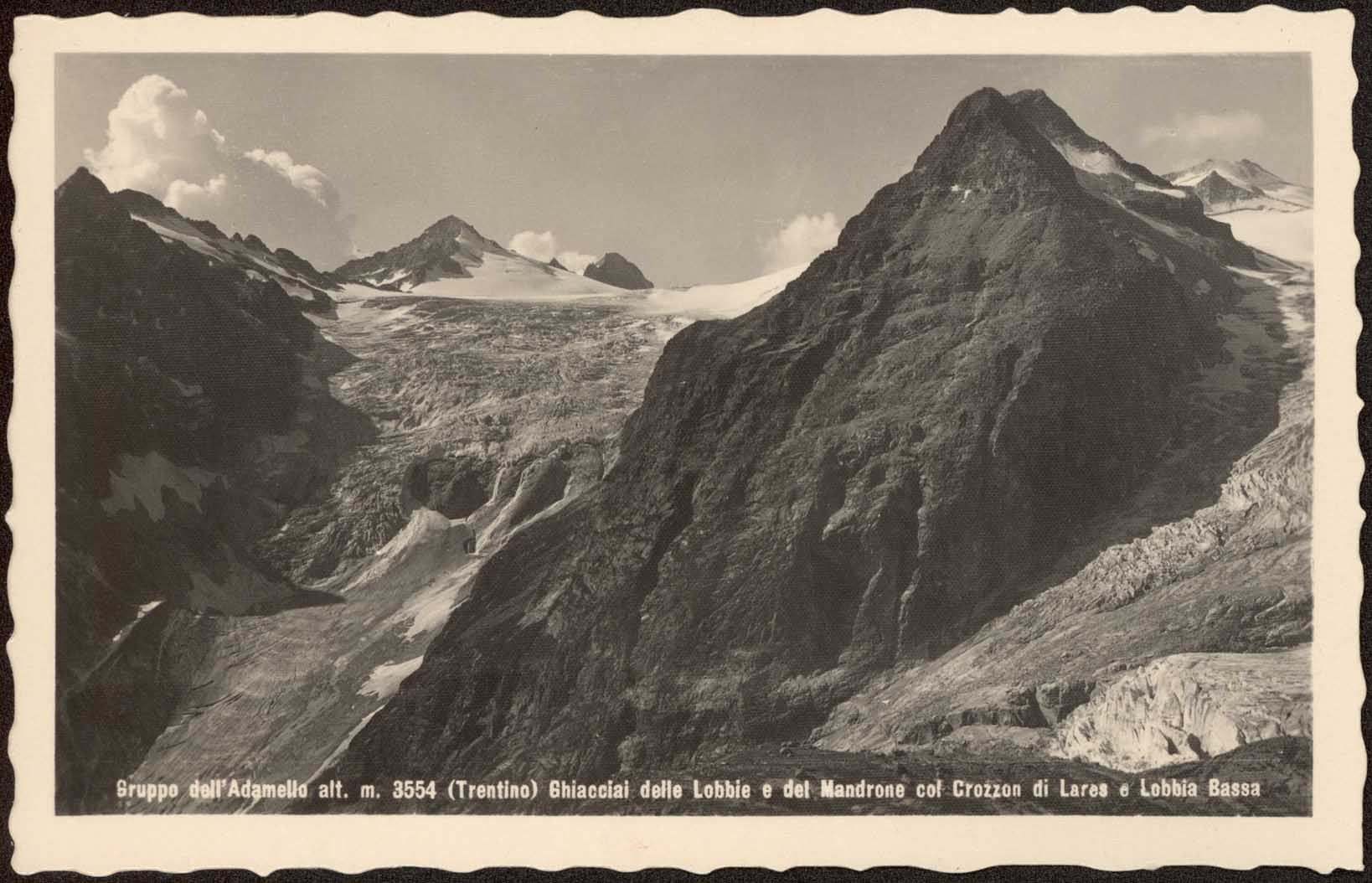 | Gruppo dell'Adamello alt. m. 3554 (Trentino) Ghiacciai delle Lobbie e del Mandrone col Crozzon di Lares e Lobbia Bassa |
