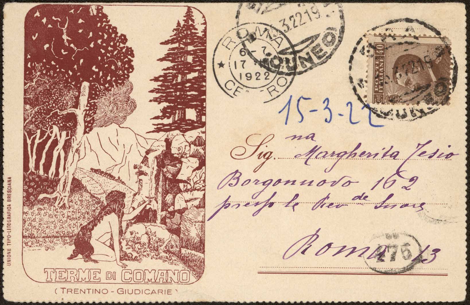 173x132 mm ripieg. a 86x132 mm, b/n. Data dal timbro postale, sul verso informazioni sulle Terme