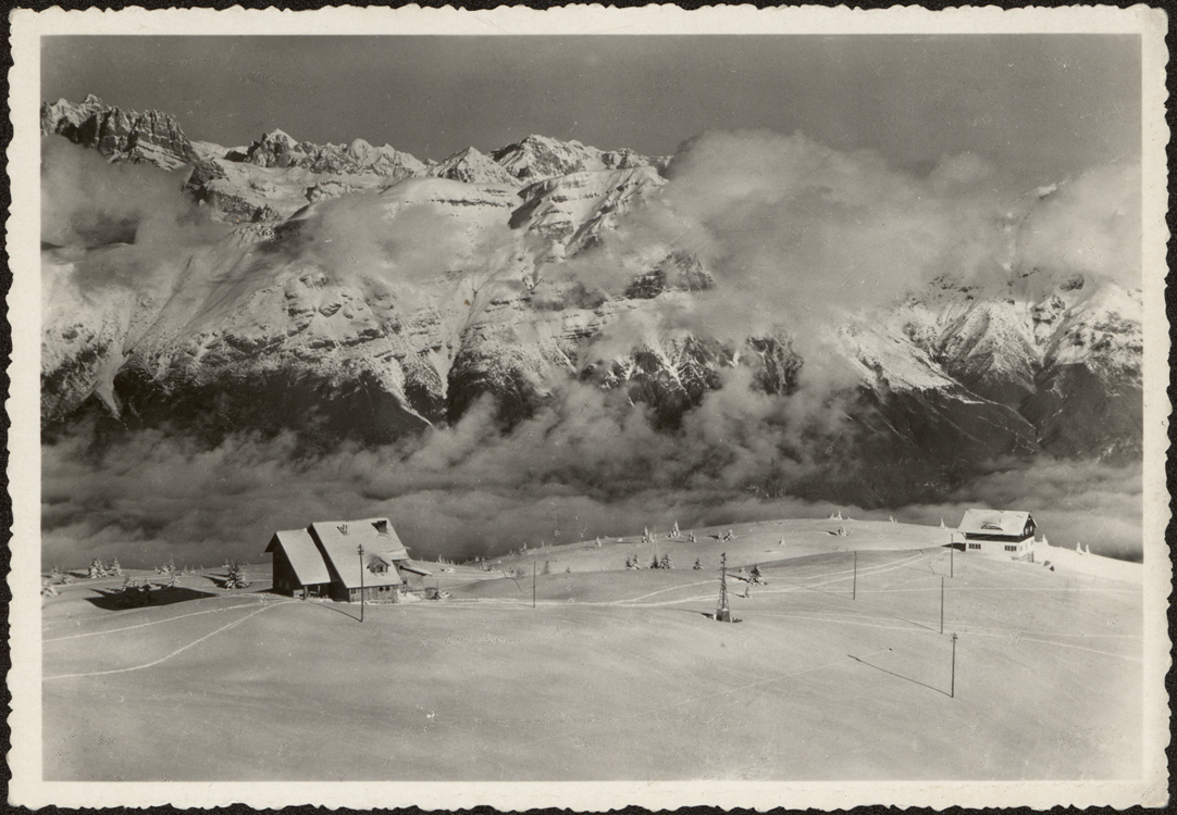 | Bondone d'inverno (Trento) - Capanna Vason e Palon m. 1650 con le Dolomiti di Brenta |