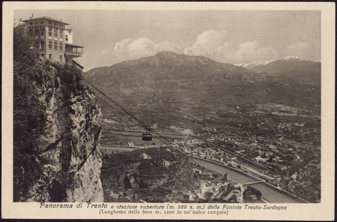 | Panorama di Trento e stazione superiore (m. 580 s.m.) della Funivia Trento-Sardagna ... |