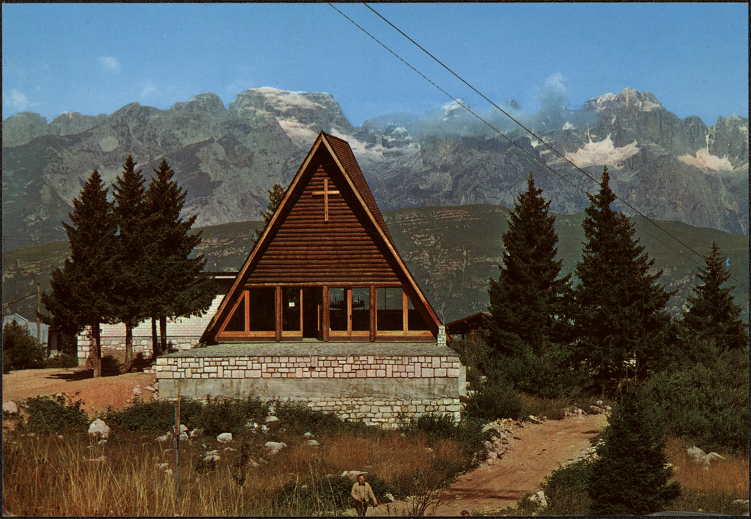 | Vason di Monte Bondone (Trento) m. 1500 La chiesetta - nello sfondo le Dolomiti di Brenta |