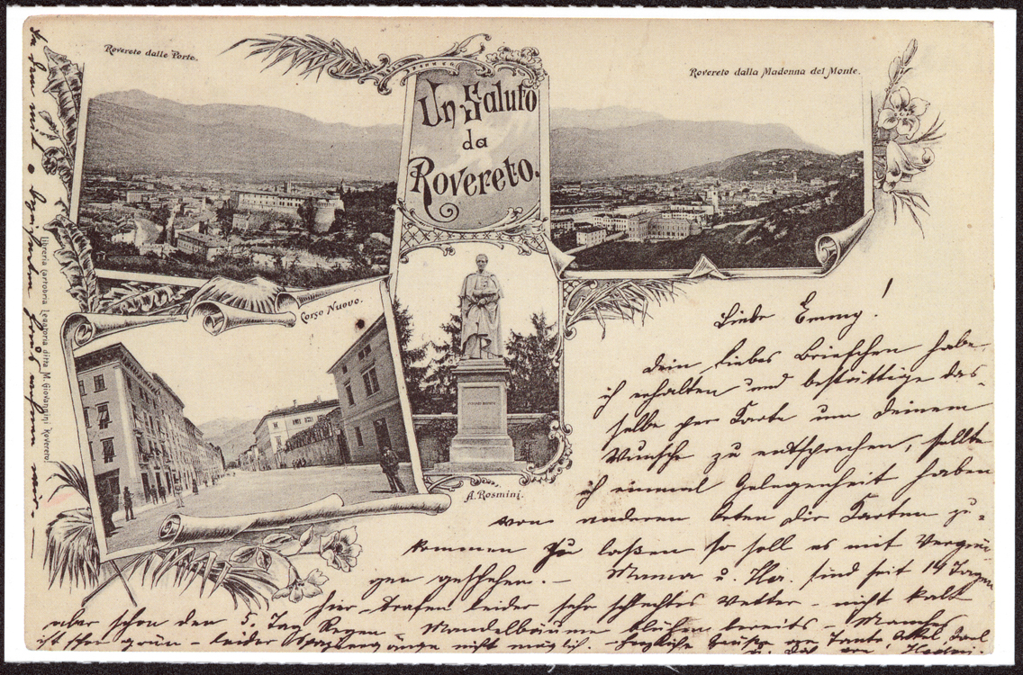 95x142 mm, b/n. Ristampa dell'edizione: Rovereto, Giovannini, 1898, l'originale è conservato al Museo Nuvoli della cartolina di Isera