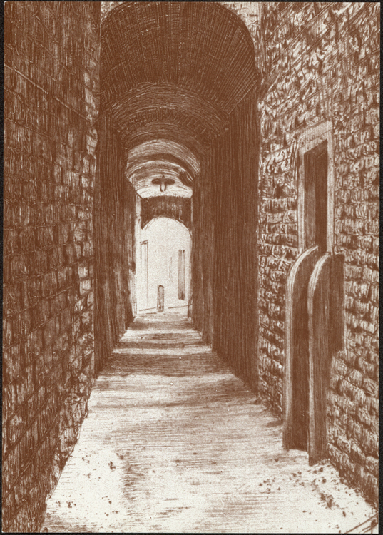 153x108 mm, b/n. Raccolta con altre 28 cartoline dello stesso editore in un cofanetto (titolo in copertina: Trento. Una trentina di cartoline della Trento d'altri tempi. Pirografie di Guido Baldessarini a cura di Aldo Bertoluzza)