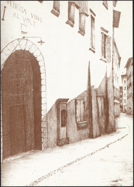 Trento Fossato del Teatro e la vendita vino "Al Volt"