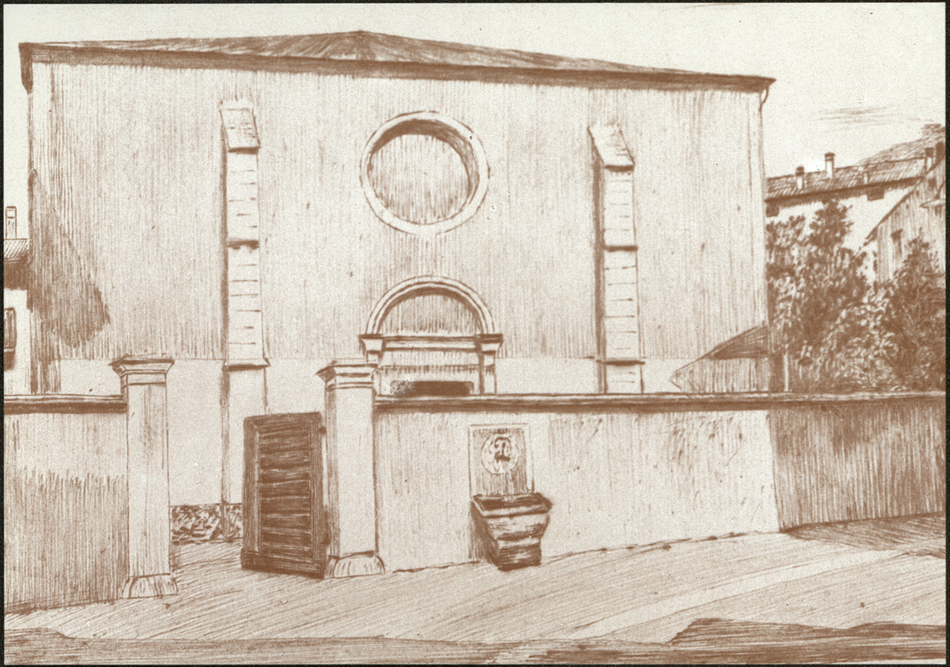 108x153 mm, b/n. Raccolta con altre 28 cartoline dello stesso editore in un cofanetto (titolo in copertina: Trento. Una trentina di cartoline della Trento d'altri tempi. Pirografie di Guido Baldessarini a cura di Aldo Bertoluzza)