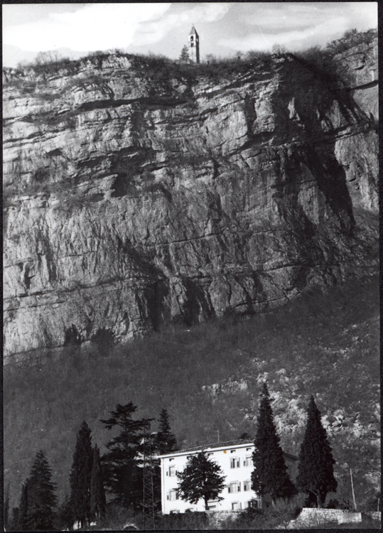 146x104 mm, b/n. Pubblicata probabilmente tra il 1970 e il 1980, raccolta con altre 14 cartoline (titolo del contenitore: Trento Villa S. Nicolò Anno pastorale, convegni di studio, incontri spirituali)