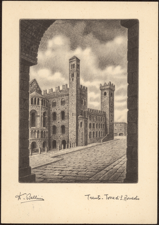 149x104 mm, b/n. Pubblicata probabilmente tra il 1920 e il 1930, raccolta in un pieghevole con altre 6 cartoline dello stesso editore (titolo in copertina: Città d'Italia - Trento)(TIC511-1779)