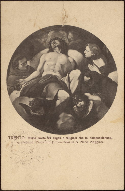 | Trento. Cristo morto fra angeli e religiosi che lo compassionano, quadro del Tintoretto (1512-1594) in S. Maria Maggiore |