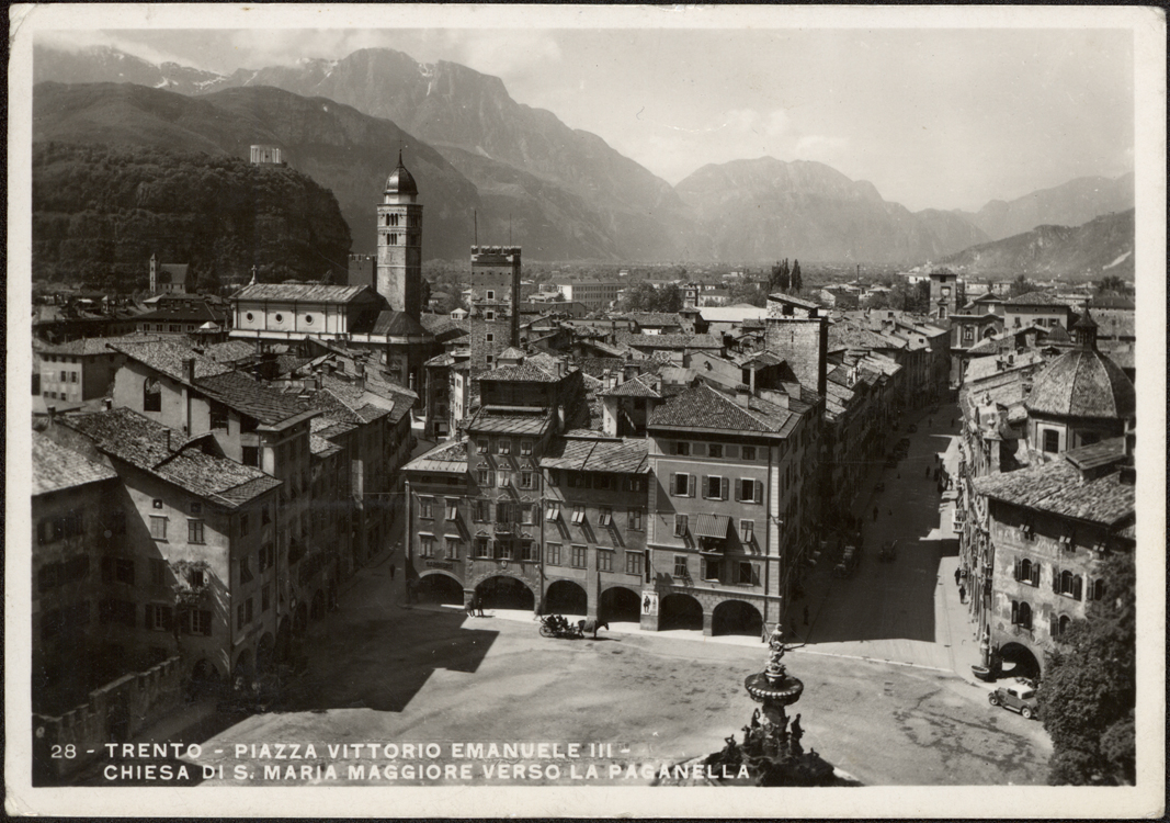 | Trento - Piazza Vittorio Emanuele III - Chiesa di S. Maria Maggiore verso la Paganella |