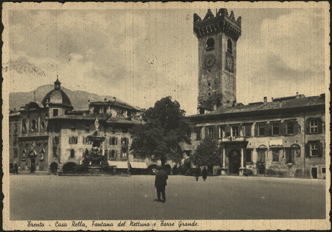 | Trento - Casa Rella, Fontana del Nettuno e Torre Grande. |
