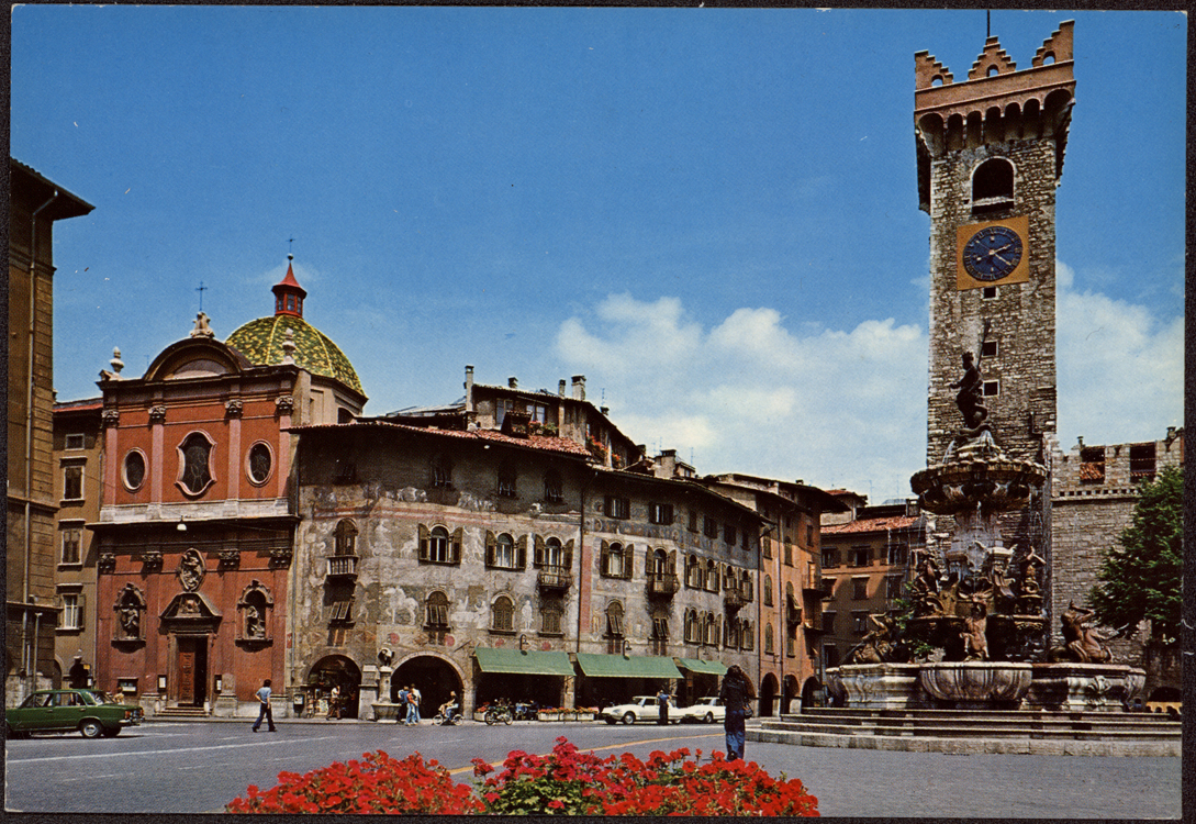 Trento Piazza Duomo con casa Rella e Torre Civica