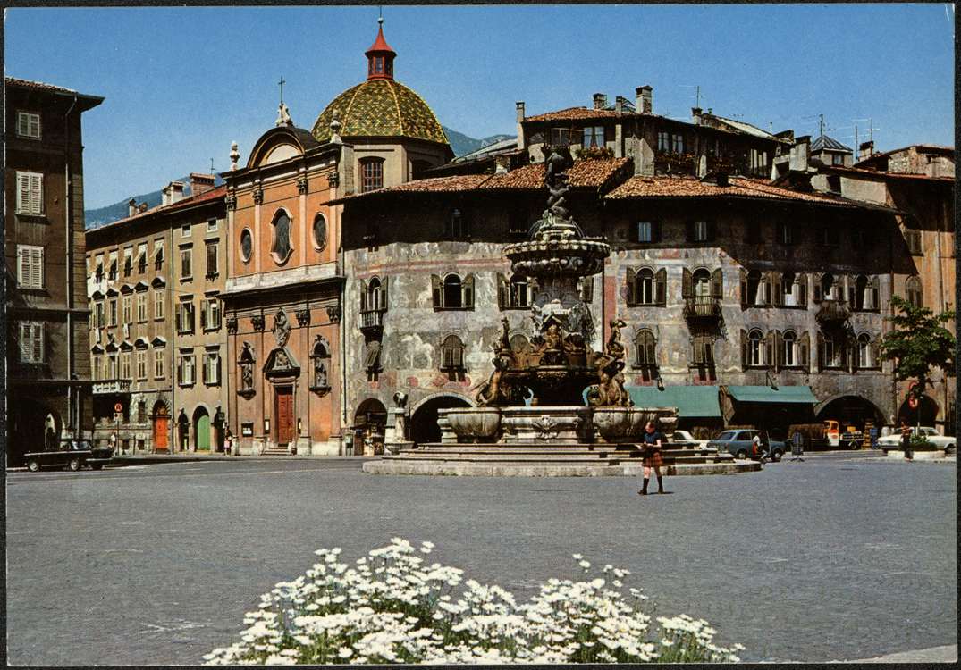 | Trento Piazza Duomo con fontana del Nettuno e Casa Rella |