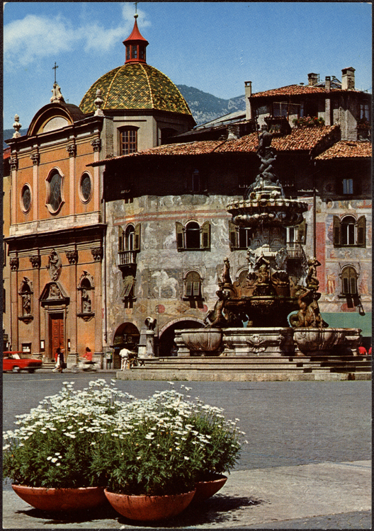 | Trento Piazza Duomo con fontana del Nettuno e Casa Rella |