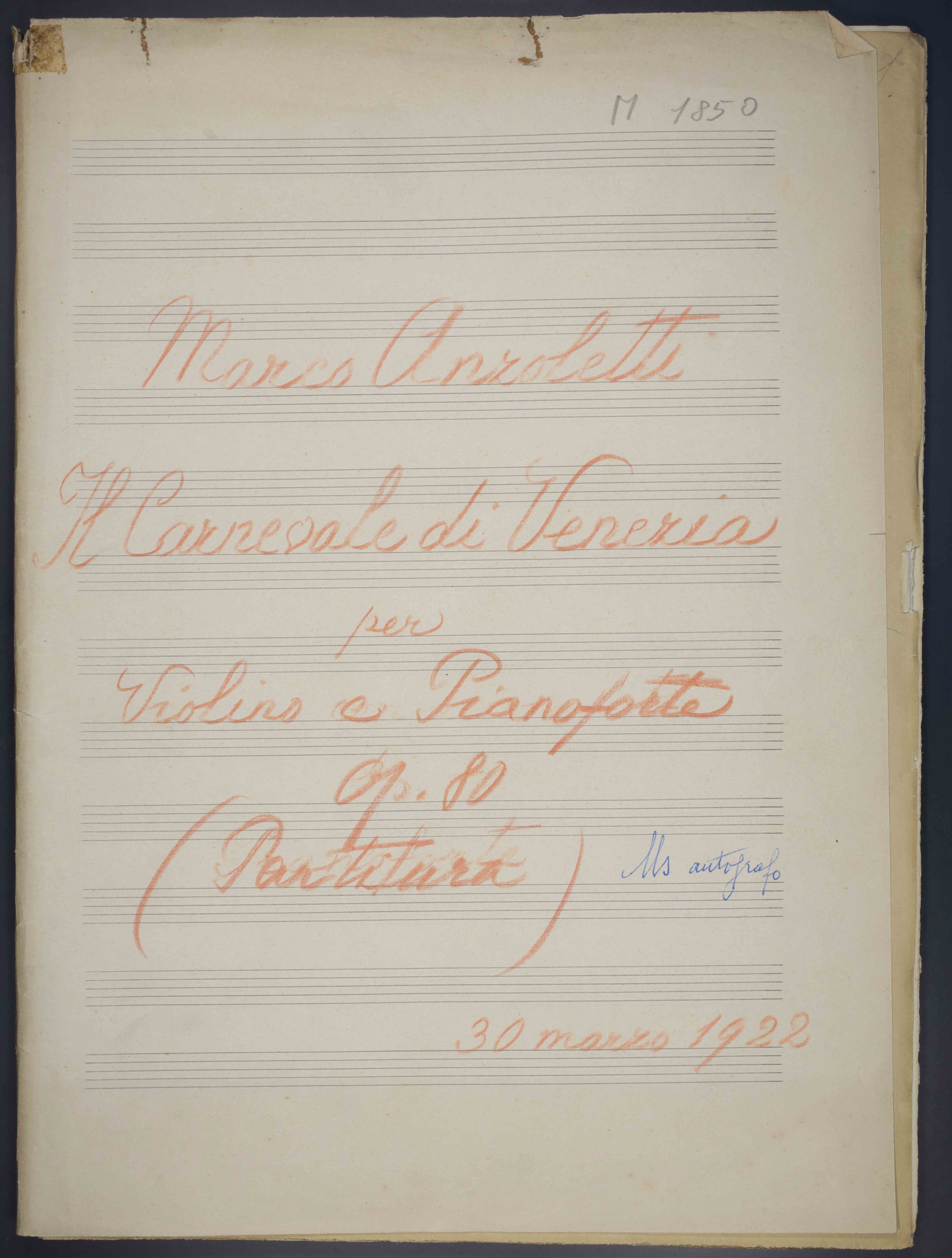1 partitura ([2], 63, [1] p.) , 33 cm. Ricevuto in deposito dalla Società Filarmonica di Trento nel 1941. Manoscritto autografo.