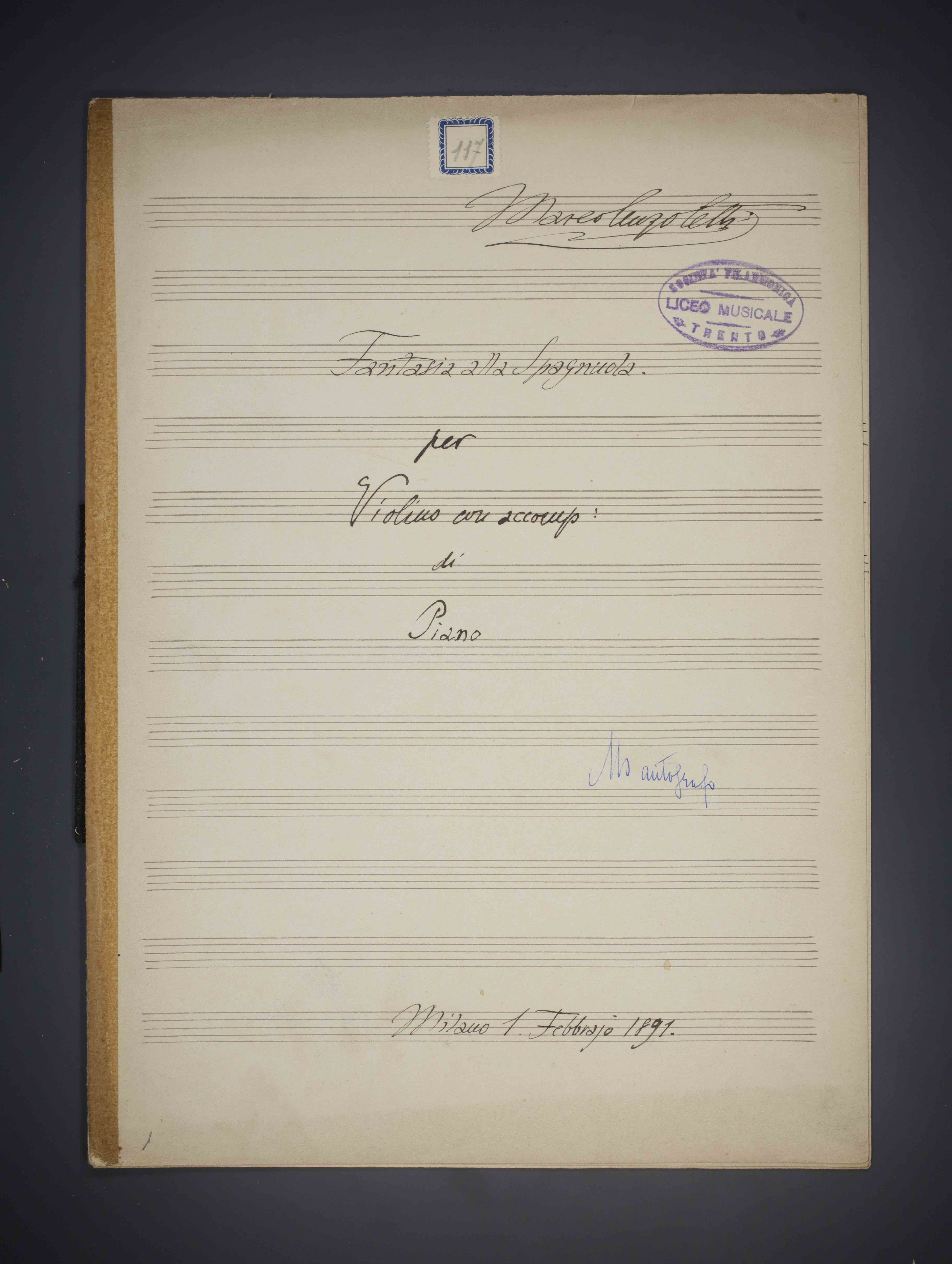 1 partitura ([8] c.) , 33 cm. Ricevuto in deposito dalla Società Filarmonica di Trento nel 1941. Manoscritto autografo. Timbro a c. 1r del Liceo musicale - Società Filarmonica Trento. Antica segnatura di collocazione a c. 1r: 117