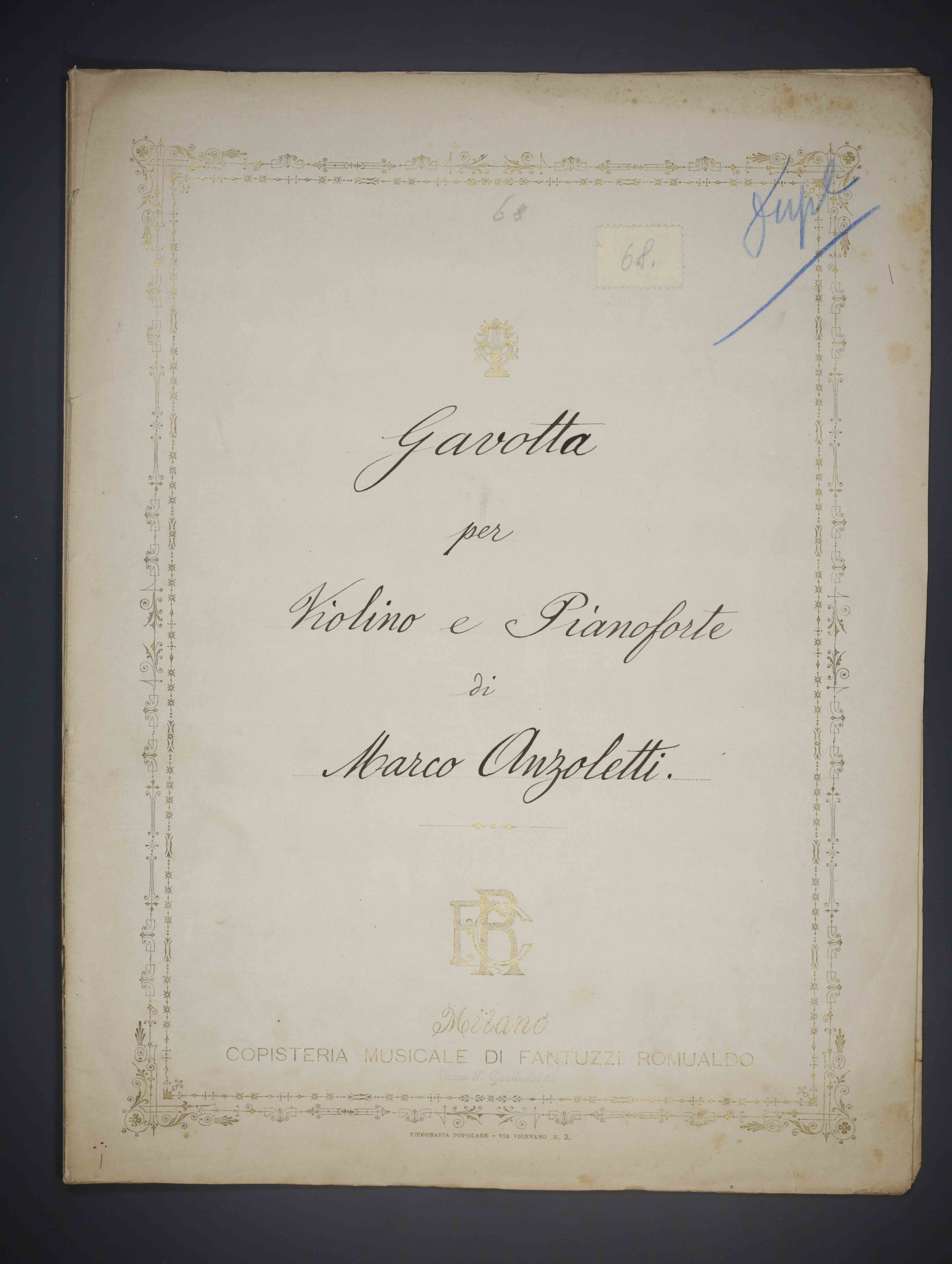 1 partitura ([5] c.) , 33 cm + 1 parte ([1] c.). Ricevuto in deposito dalla Società Filarmonica di Trento nel 1941. Manoscritto autografo. Antica segnatura di collocazione a c. 1r: 68