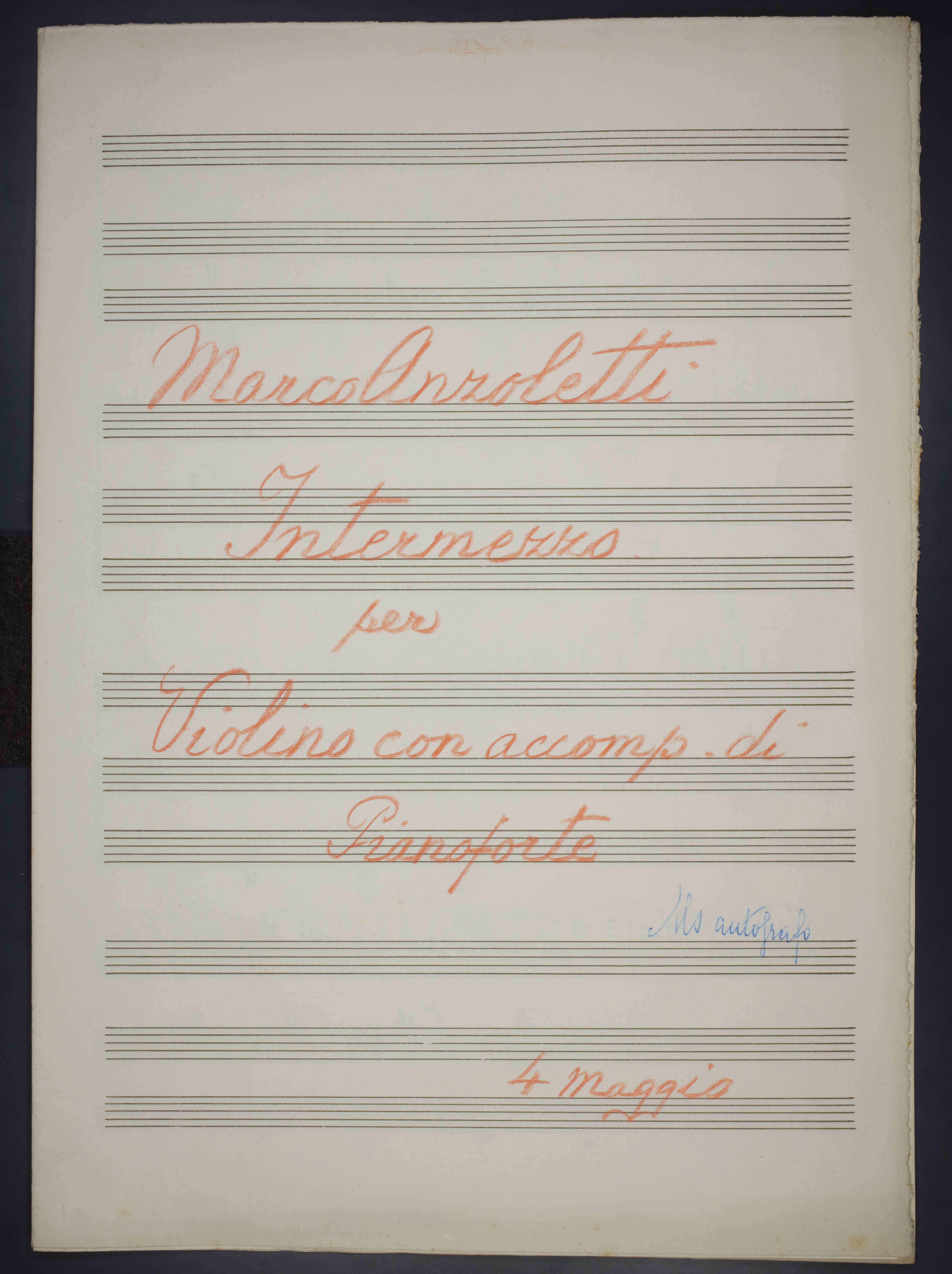 1 partitura ([2], 4, [2] p.), 33 cm. Ricevuto in deposito dalla Società Filarmonica di Trento nel 1941. Manoscritto autografo.