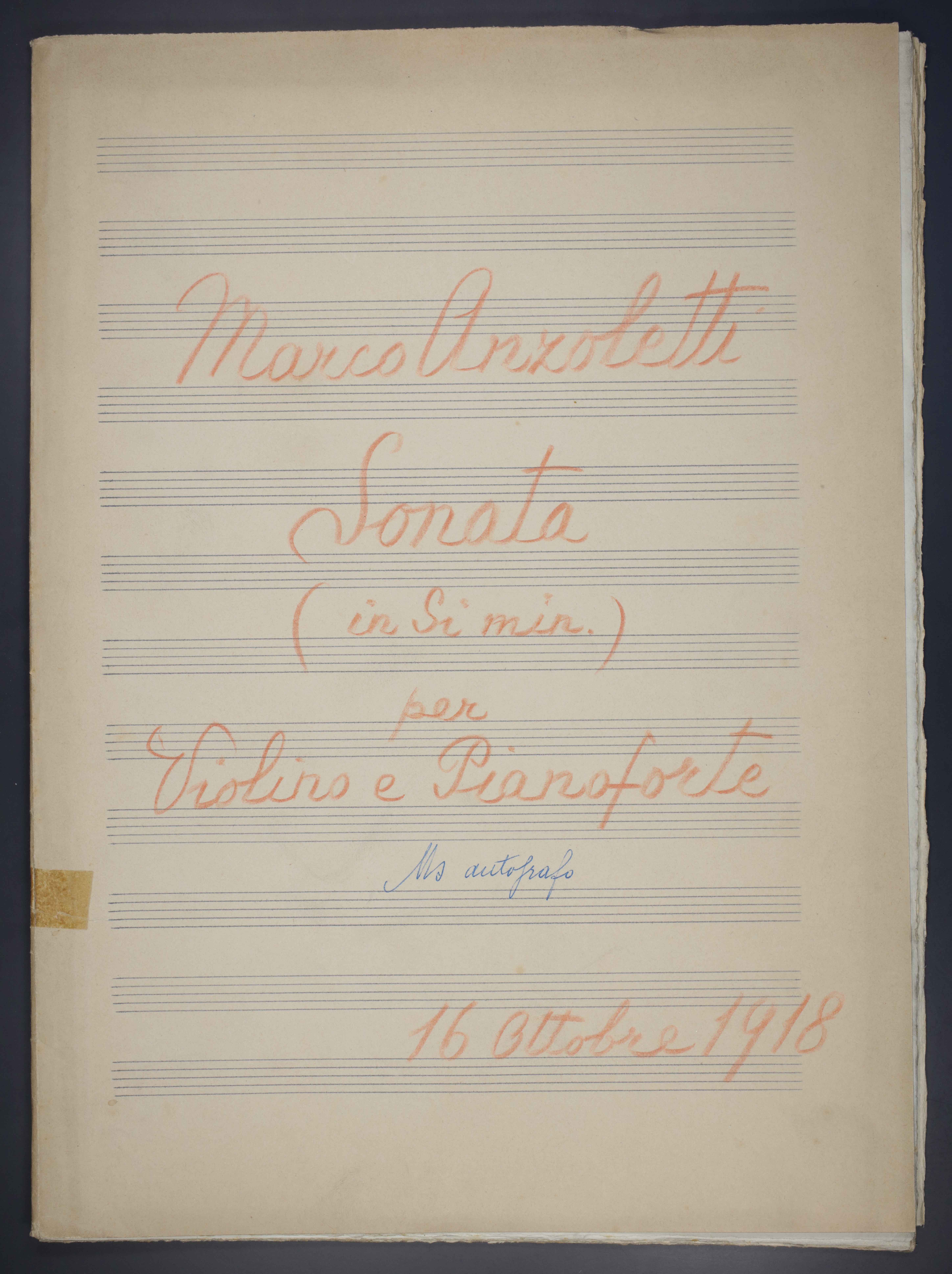 1 partitura ([2], 22, [2] p.) , 33 cm. Ricevuto in deposito dalla Società Filarmonica di Trento nel 1941. Manoscritto autografo.
