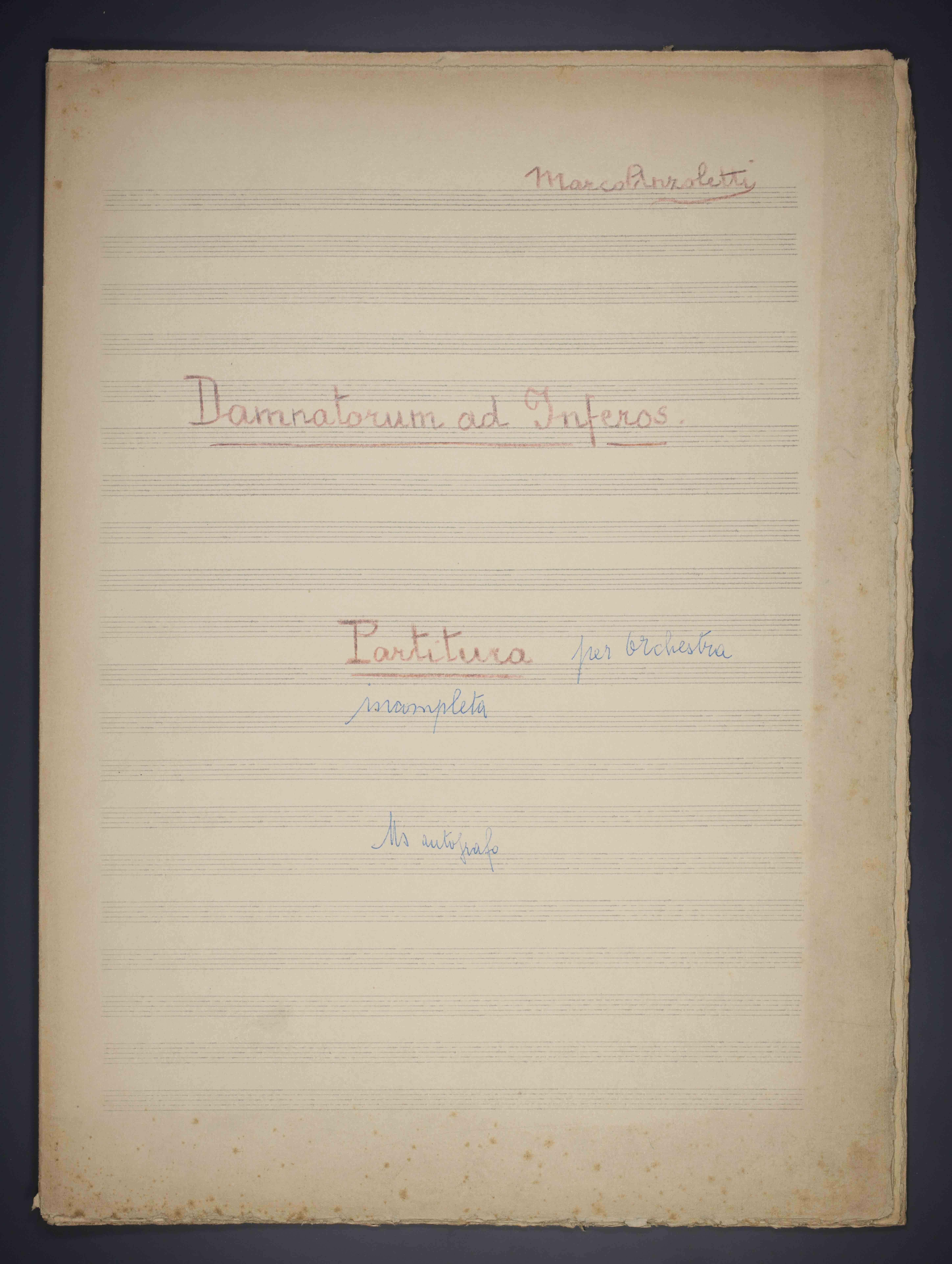 1 partitura ([2], 23, [3] p.) , 33 cm. Ricevuto in deposito dalla Società Filarmonica di Trento nel 1941. Manoscritto autografo
