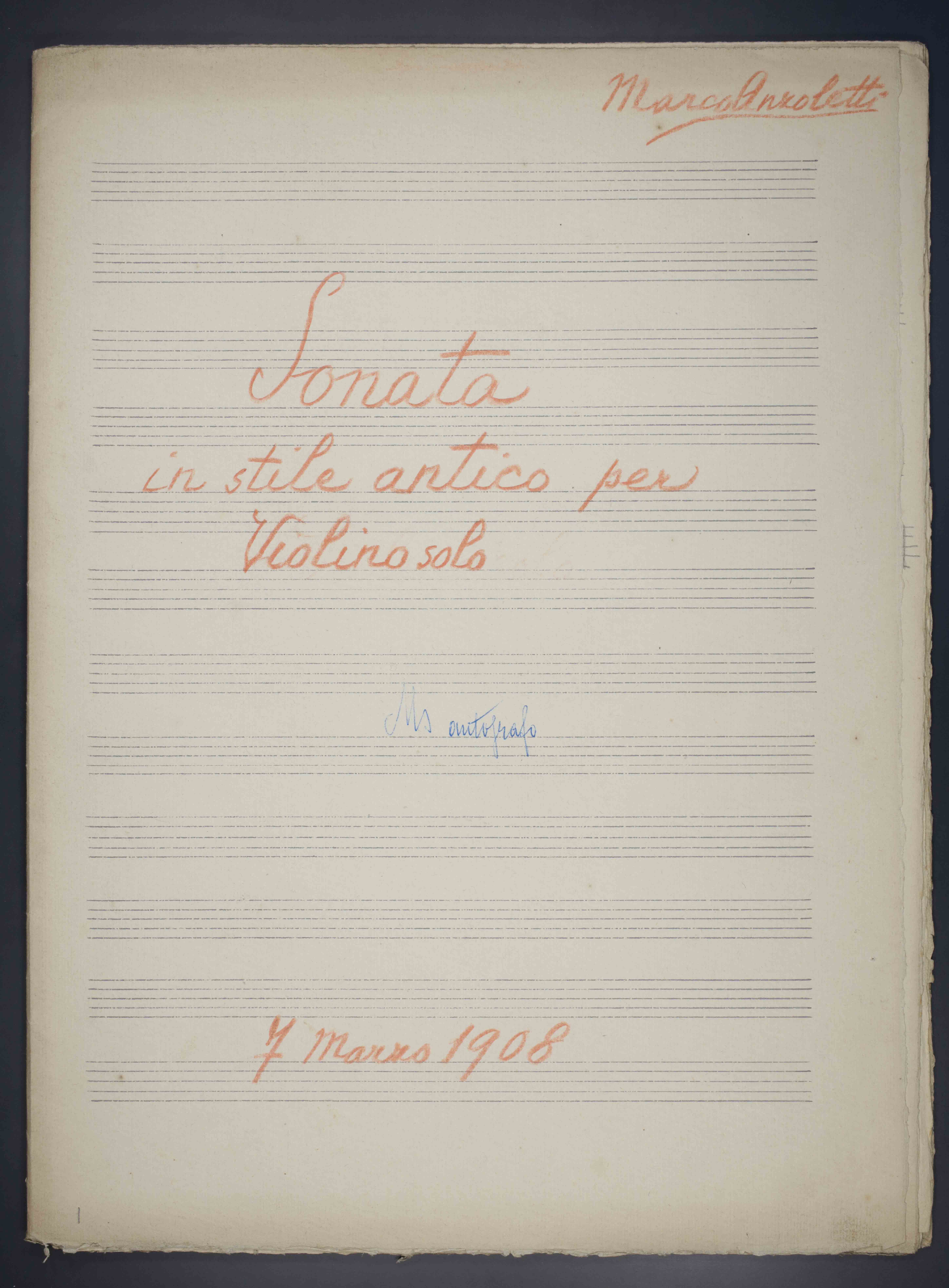 [13] c. , 33 cm. Ricevuto in deposito dalla Società Filarmonica di Trento nel 1941. Manoscritto autografo