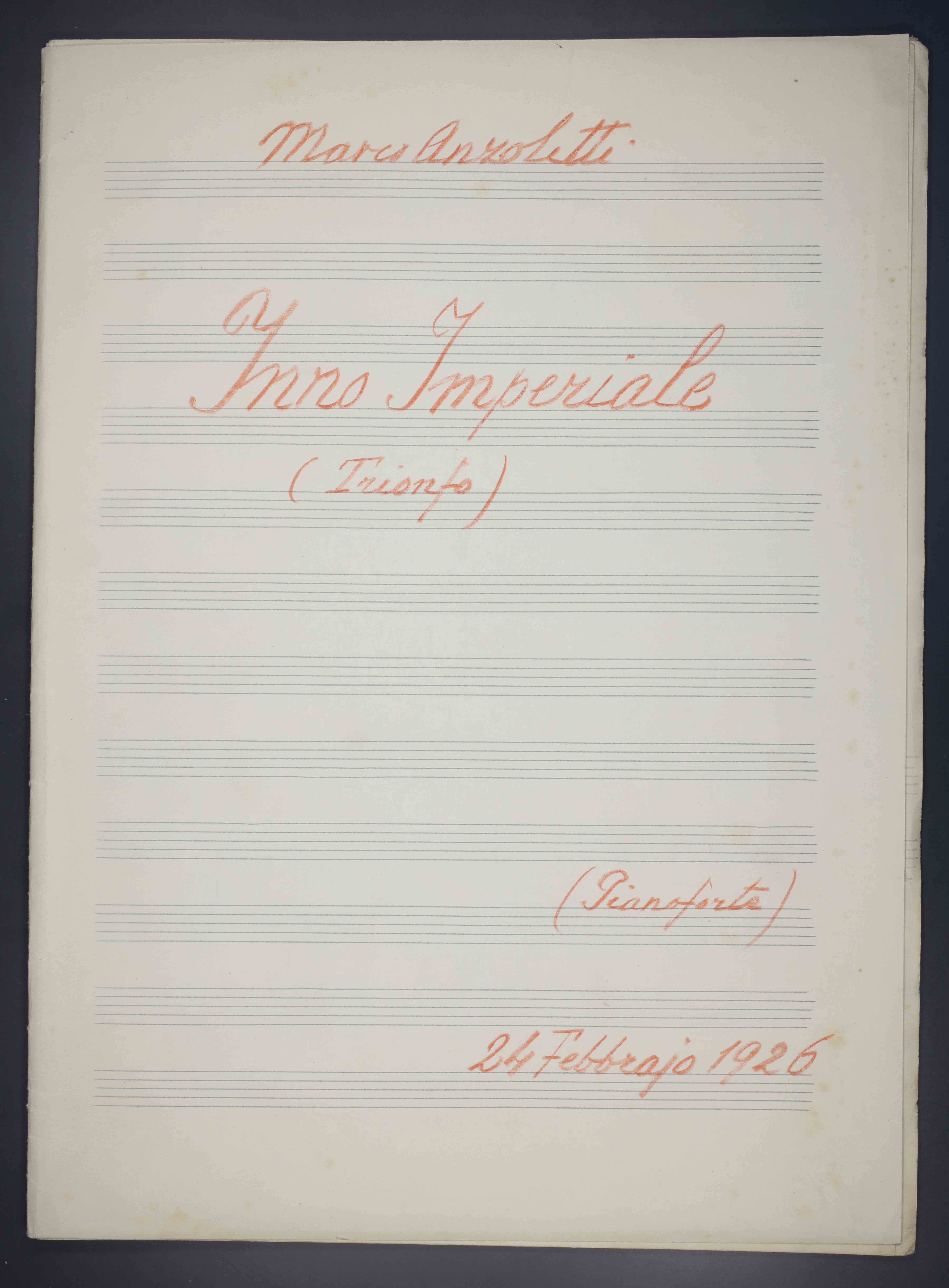 20 p. , 33 cm. Ricevuto in deposito dalla Società Filarmonica di Trento nel 1941. Manoscritto autografo
