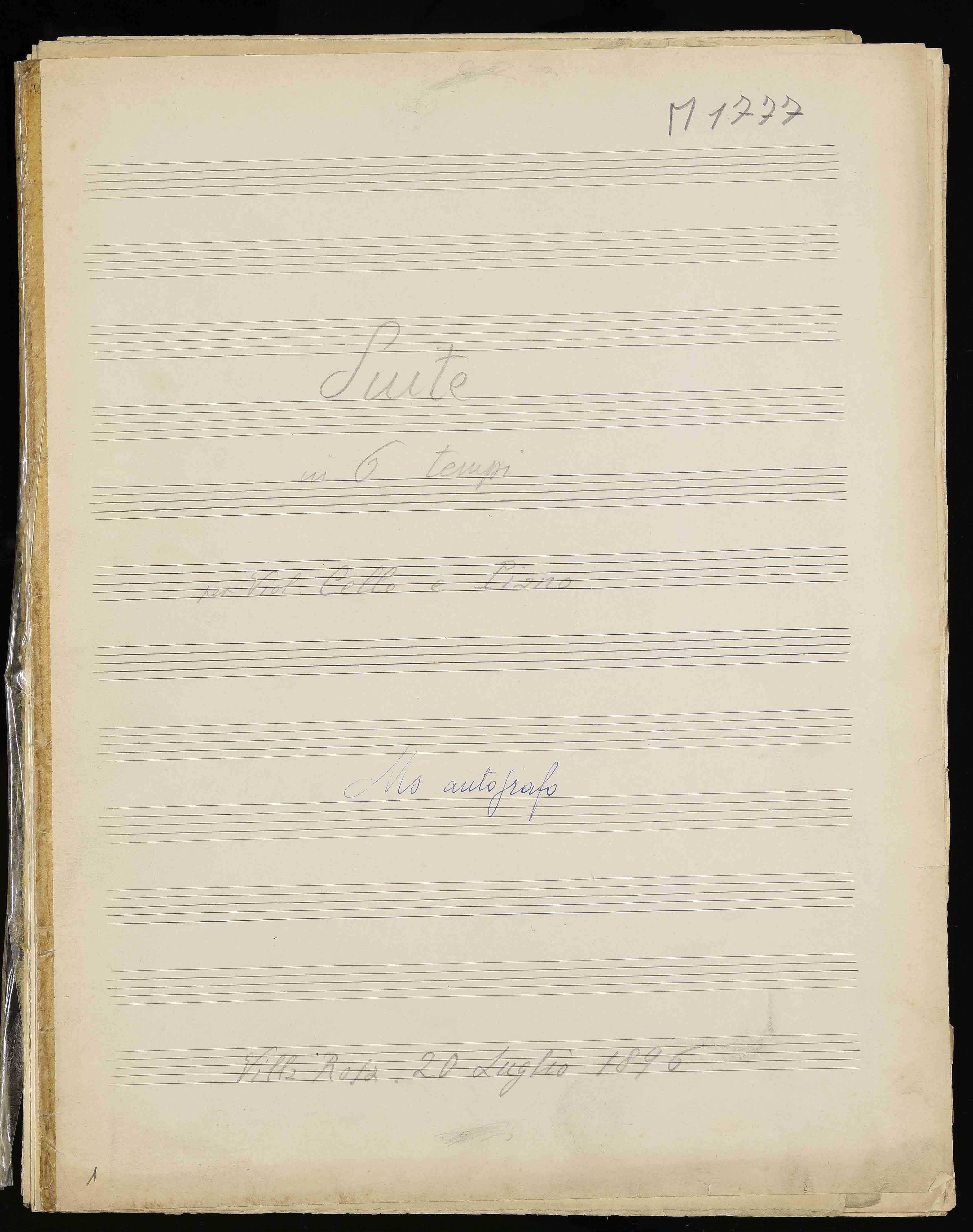 1 partitura ([28] c.) , 34 cm. Ricevuto in deposito dalla Società Filarmonica di Trento nel 1941. Manoscritto autografo
