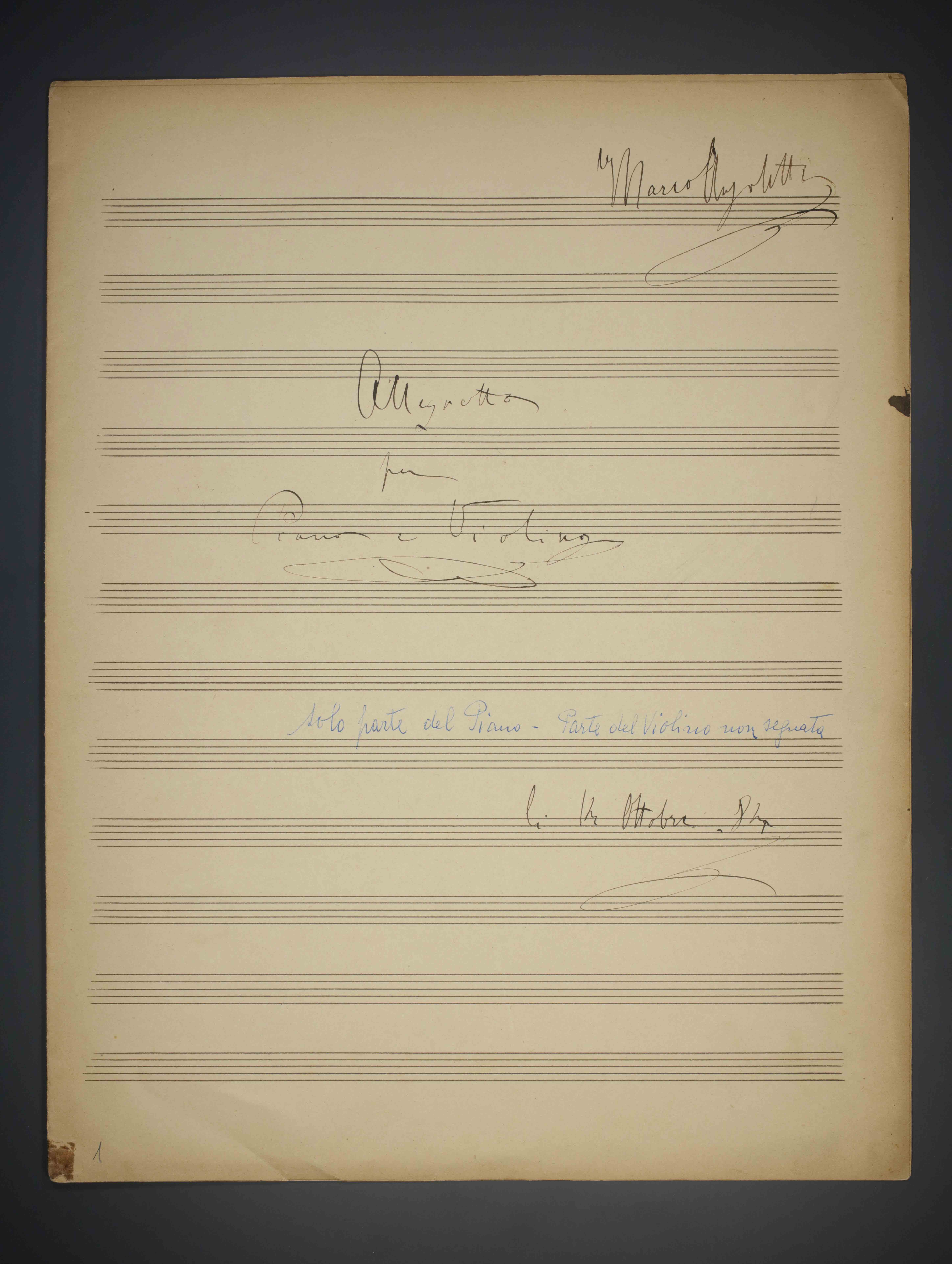 [4] c. , 34 cm. Ricevuto in deposito dalla Società Filarmonica di Trento nel 1941. Manoscritto autografo. La parte di violino non è segnata